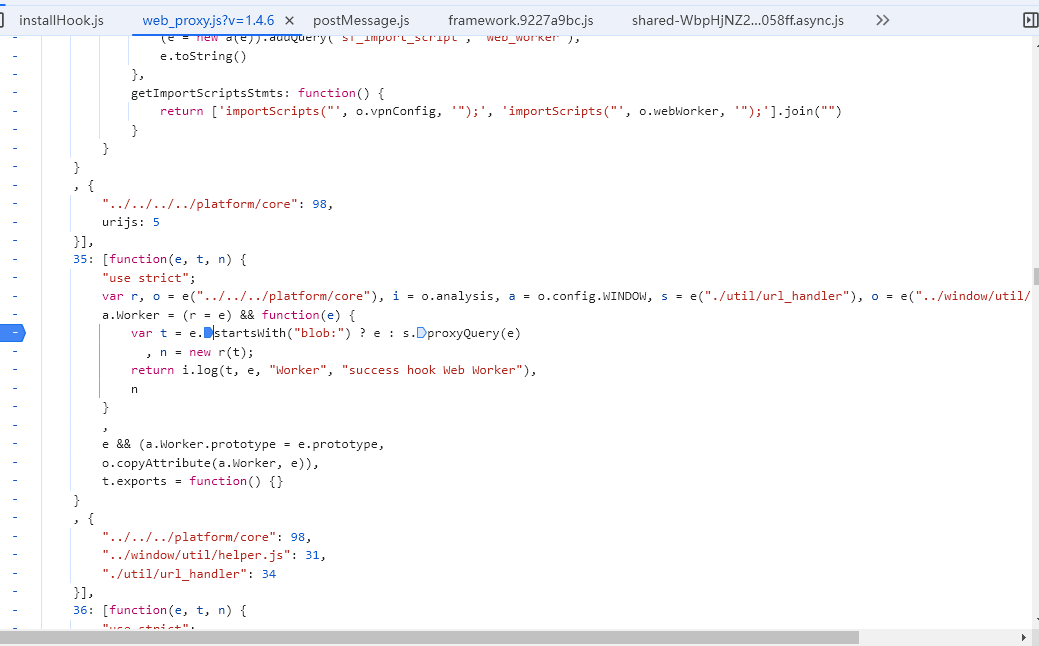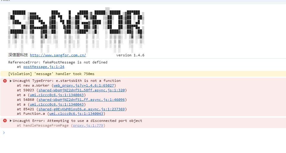 被深信服劫持的 web worker 常规调用 web worker 发现线上无法使用,在内网可以使用,排查发现是深信服的劫持